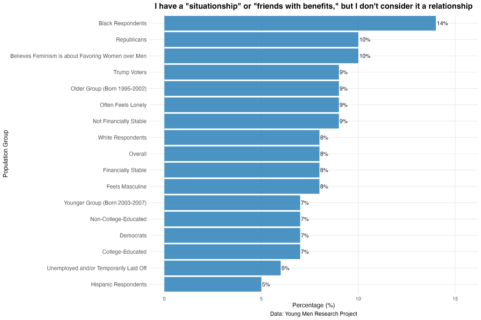A small share (8 percent) describe themselves as being in “situationships” or casual “friends with benefits” arrangements.